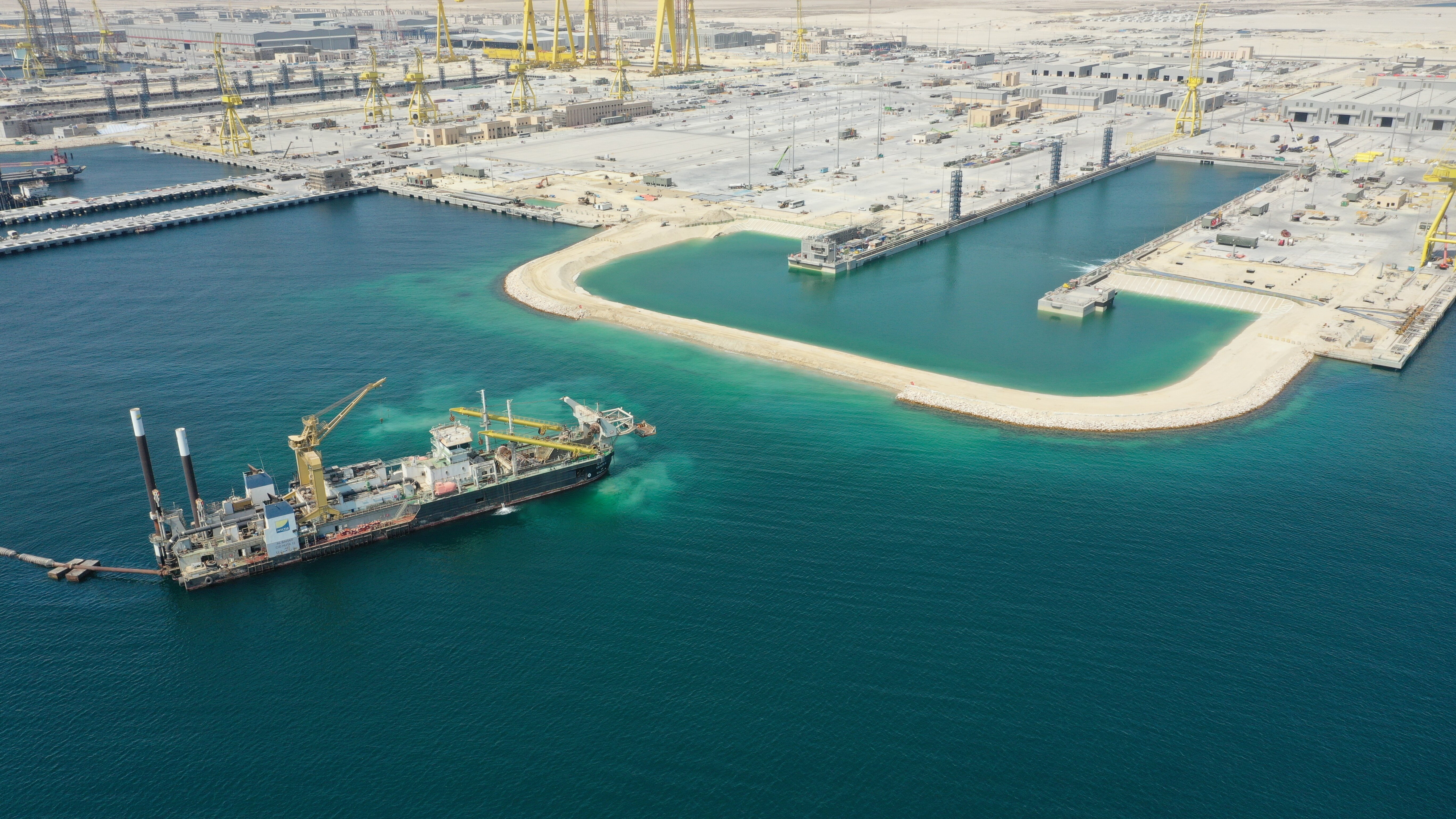 7月18日,隨著(zhù)絞吸式挖泥船在船塢圍堰外側的啟動(dòng)運轉,沙特國王港項目2號干船塢正式啟動(dòng)圍堰疏浚,為后續塢門(mén)進(jìn)入船塢進(jìn)行安裝奠定了堅實(shí)的基礎。