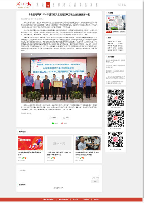 湖北日報客戶(hù)端訊(通訊員 何磊)8月5日,由中國南水北調江漢水網(wǎng)公司建管三部主辦、水電十四局承辦的2024年引江補漢工程測量職工職業(yè)技能競賽,在引江補漢工程主體8標段圓滿(mǎn)落下帷幕。在這場(chǎng)高水平的專(zhuān)業(yè)競技中,水電五局代表隊憑借優(yōu)秀的專(zhuān)業(yè)能力和出色的團隊協(xié)作,成功取得競賽第一名的好成績(jì)。