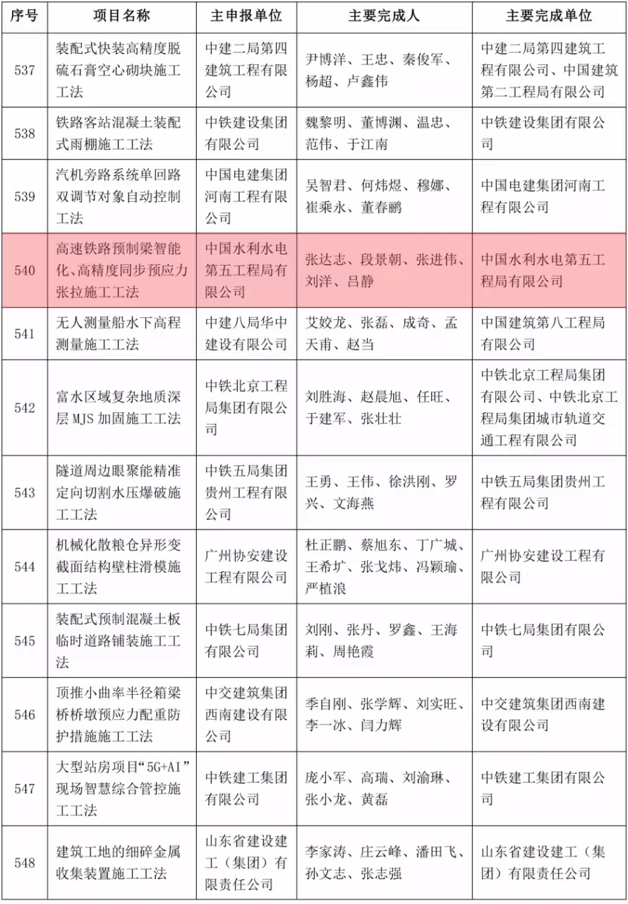 日前,第四屆工程建設微創(chuàng )新技術(shù)大賽與第二屆工程建設企業(yè)數字化、工業(yè)化、綠色低碳施工法大賽圓滿(mǎn)結束,雄商高鐵項目連獲佳績(jì),參賽作品《一種預制箱梁內模安拆轉運裝置》與《高速鐵路預制梁智能化、高精度同步預應力張拉施工工法》分別榮獲創(chuàng )新技術(shù)大賽二等獎與二等工法。