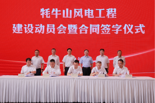 8月7日,茶布朗光伏電站工程、牦牛山風(fēng)電工程建設動(dòng)員會(huì )暨合同簽字儀式在成都舉行。公司黨委書(shū)記、董事長(cháng)李崢,黨委副書(shū)記、總經(jīng)理劉光出席會(huì )議。公司副總經(jīng)理賀祝代表水電五局在牦牛山風(fēng)電工程設計施工總承包Ⅱ標段合同書(shū)上簽字。